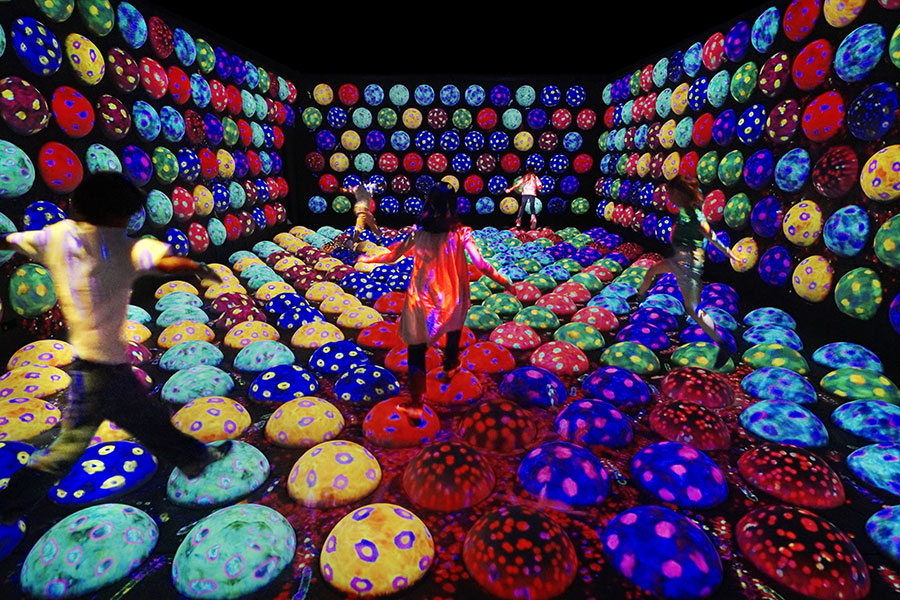 「チームラボ バイオヴォルテックス 京都」内「運動の森」の作品「マルチジャンピング宇宙」© チームラボ