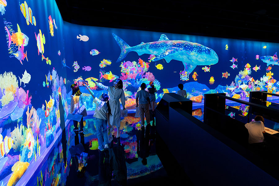 「チームラボ バイオヴォルテックス 京都」内「学ぶ!未来の遊園地」の作品「スケッチオーシャン」© チームラボ
