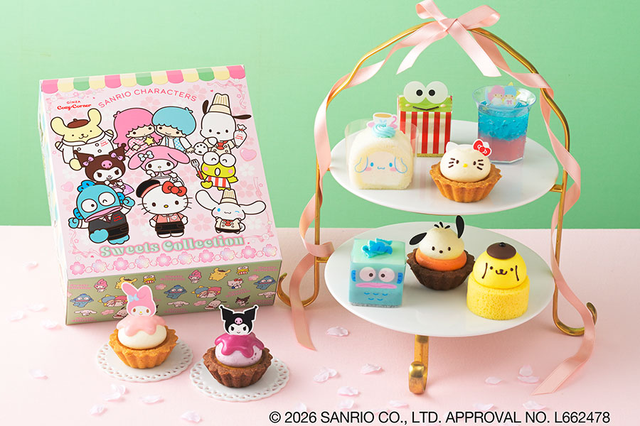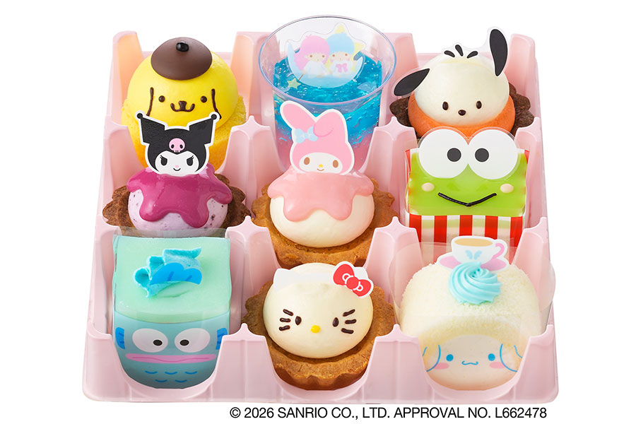 さらに、昨年好評だった「<サンリオキャラクターズ>スイーツコレクション(9個入)」(3564円)が再登場。シナモロールやポムポムプリン、ポチャッコなど全9種のキャラクターたちが可愛らしいプチケーキに変身した詰め合わせで、春らしいボックスで販売される。